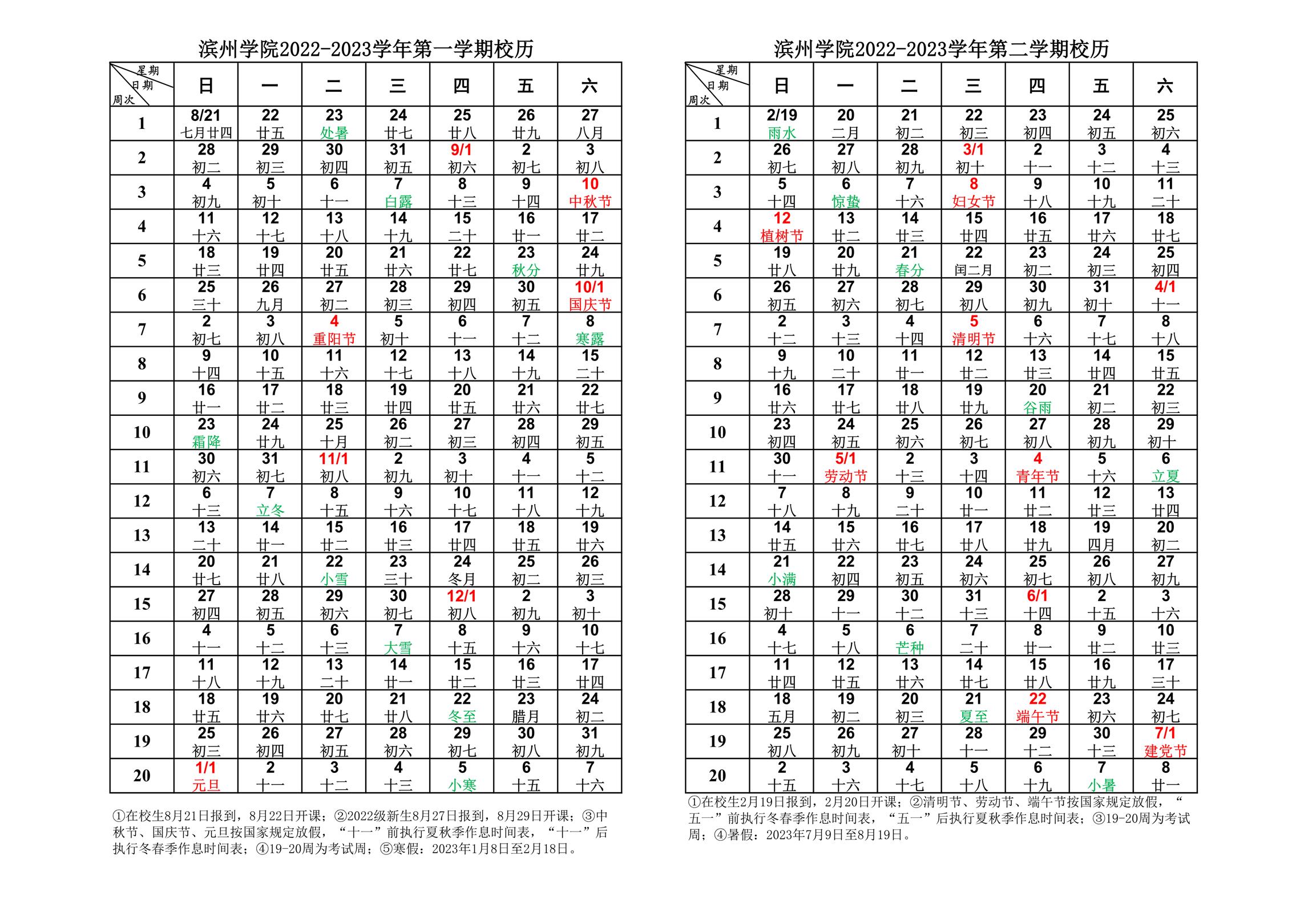 2022-2023学年校历