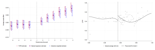 图1 AI应用对CTFP的动态因果效应、CTFP在组织韧性阈值处的断点效应